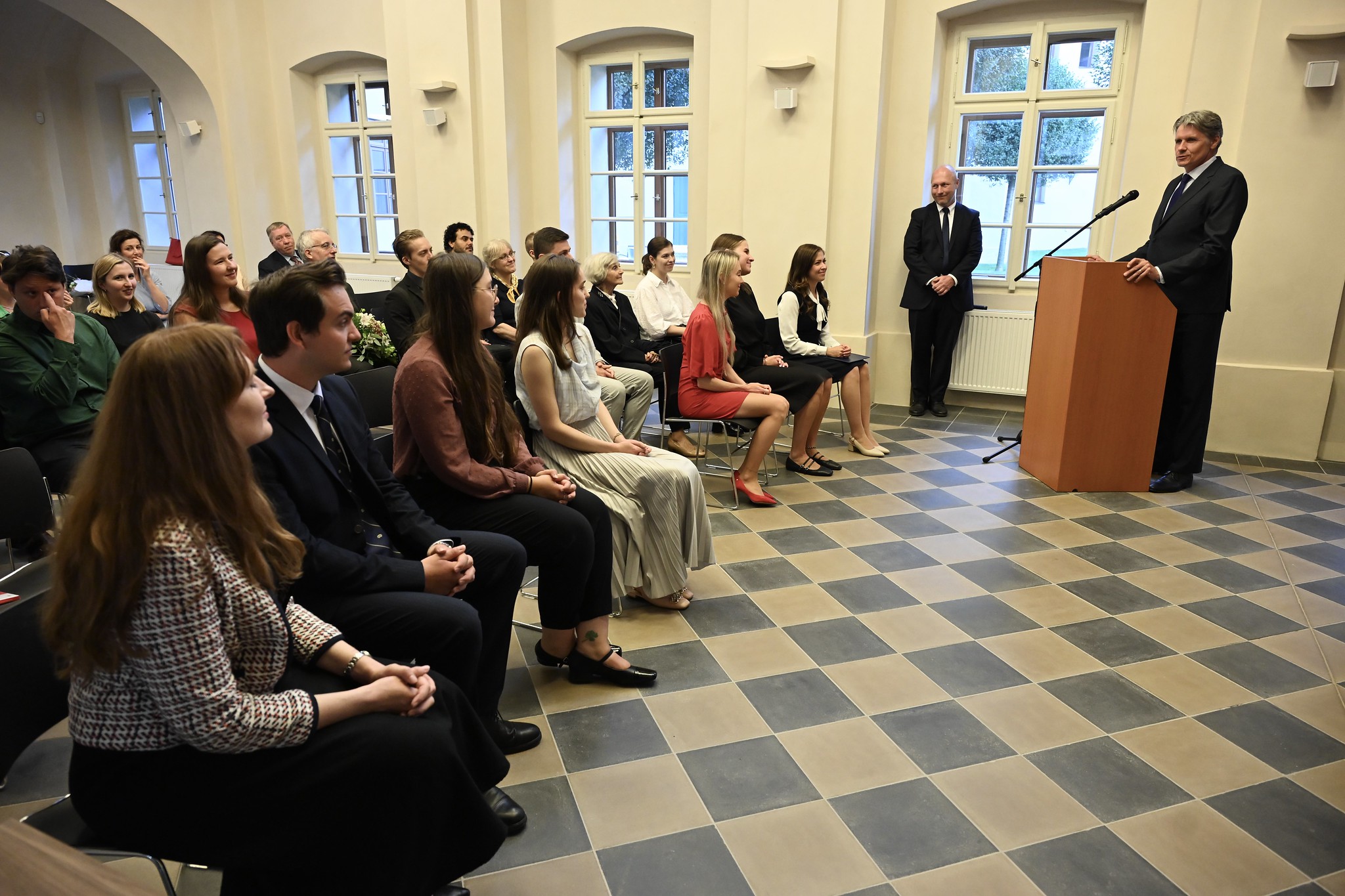 První zářijový den současně proběhlo předávání osvědčení o absolvování programu a rozloučení s absolventy minulého běhu. Přestože již měsíc plní své pracovní povinnosti na různých odborech ministerstva, sešli se k této slavnostní příležitosti, aby symbolicky předali štafetu svým nástupcům, kteří pokračují v tradici vzdělávání nových pracovníků české zahraniční služby. Další ročník základní diplomatické přípravy začne v únoru 2026 a výběrové řízení pro uchazeče je otevřeno do 19. 9. 2025. Podrobnější informace o výběrovém řízení včetně jeho harmonogramu a odpovědí na nejčastěji kladené otázky jsou k dispozici na webu Ministerstva zahraničních věcí a DA MZV.